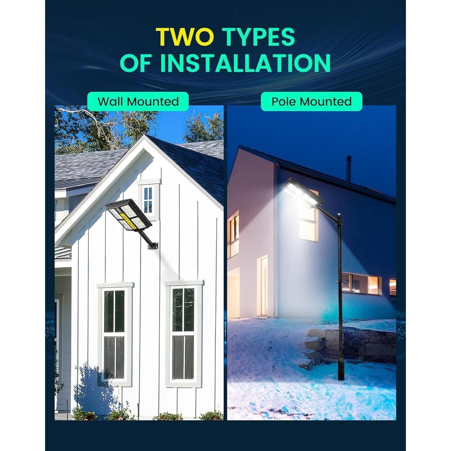 - 【Easy Installation And Wireless】 The package of the street lights comes with a wall and pole mounting accessories set, without wiring, you can easily install the solar street lights outdoors. The recommended mounting height of the street light is 13-15ft, perfect for streets and roads, parking lots, basketball courts, garages, gardens, streets, courtyards, squares, etc.