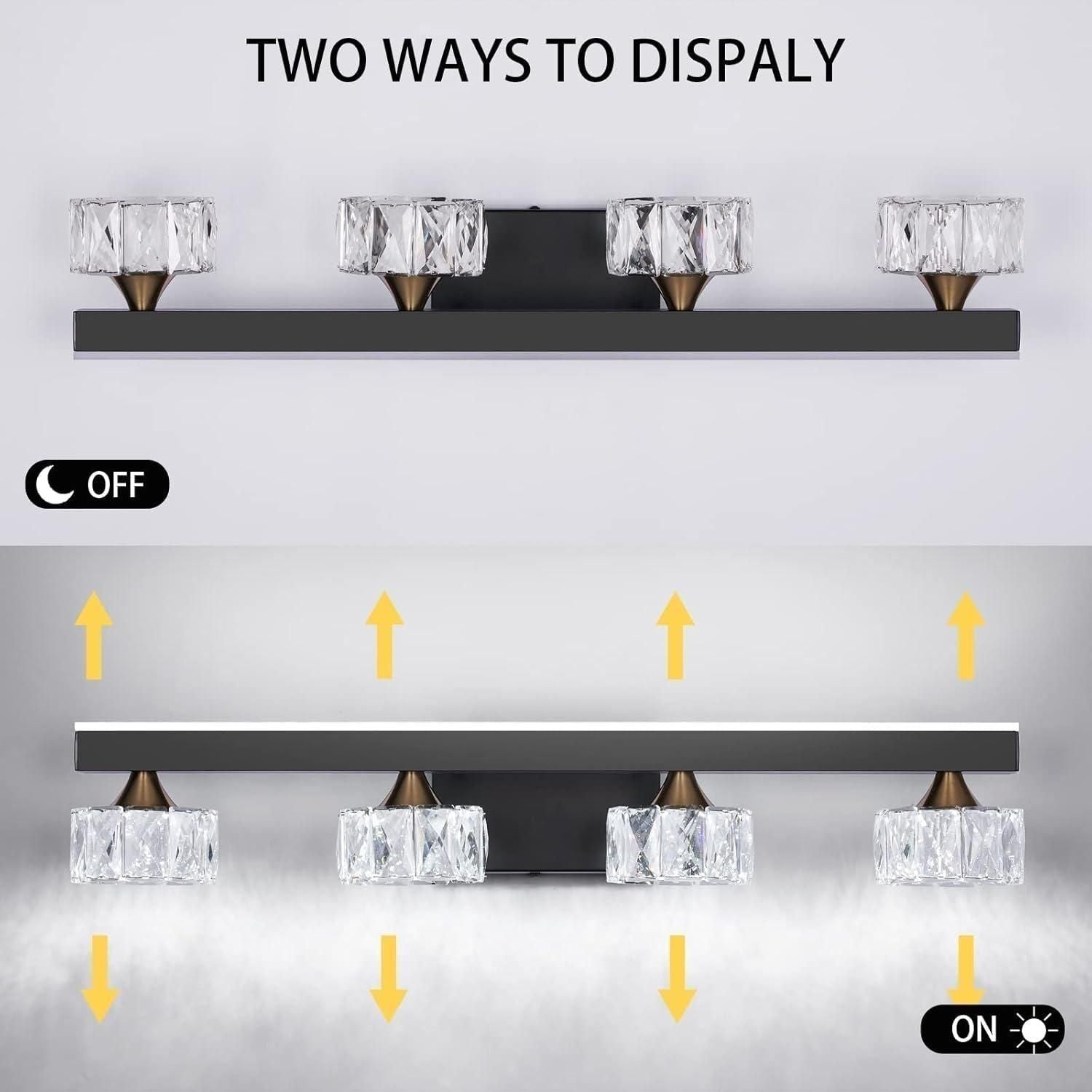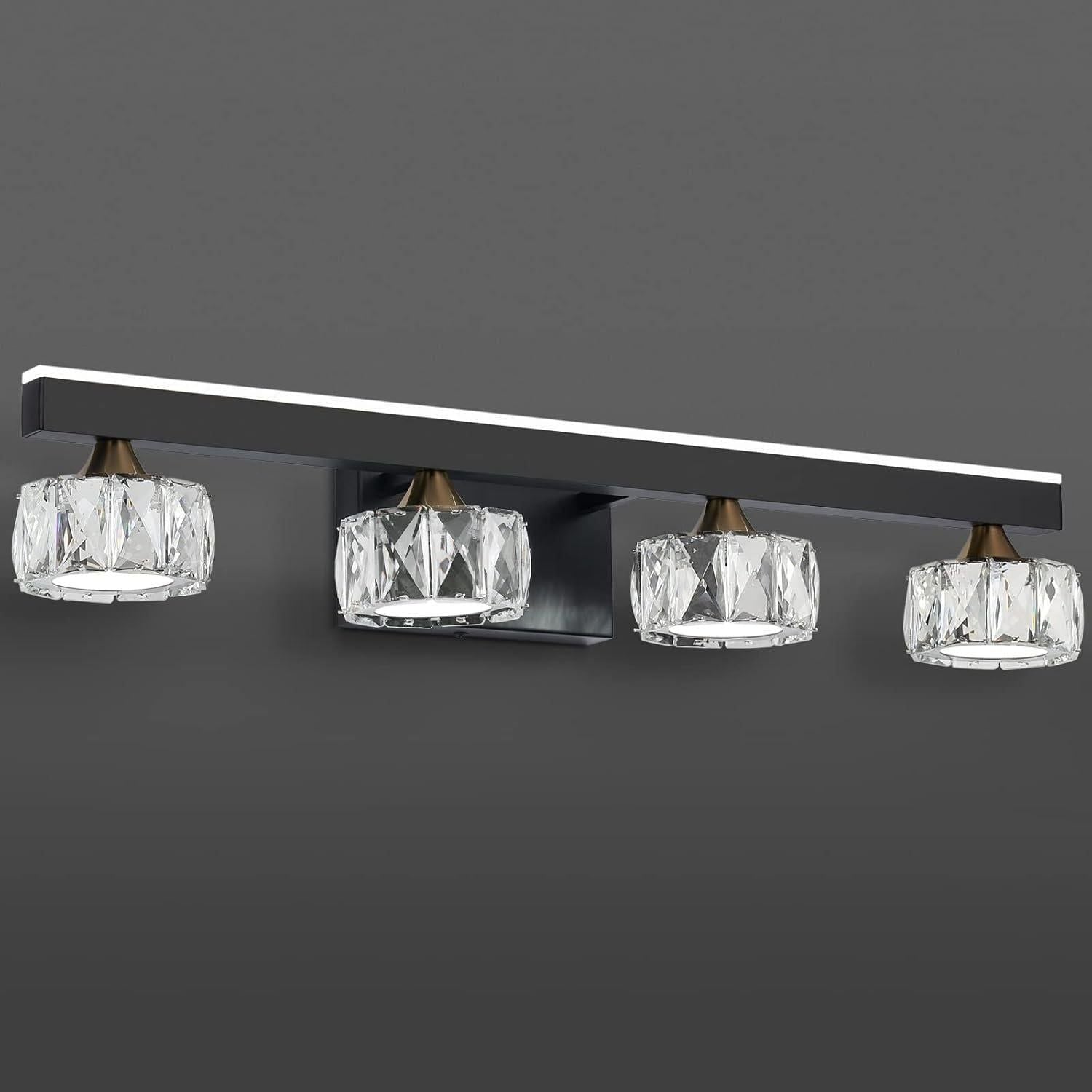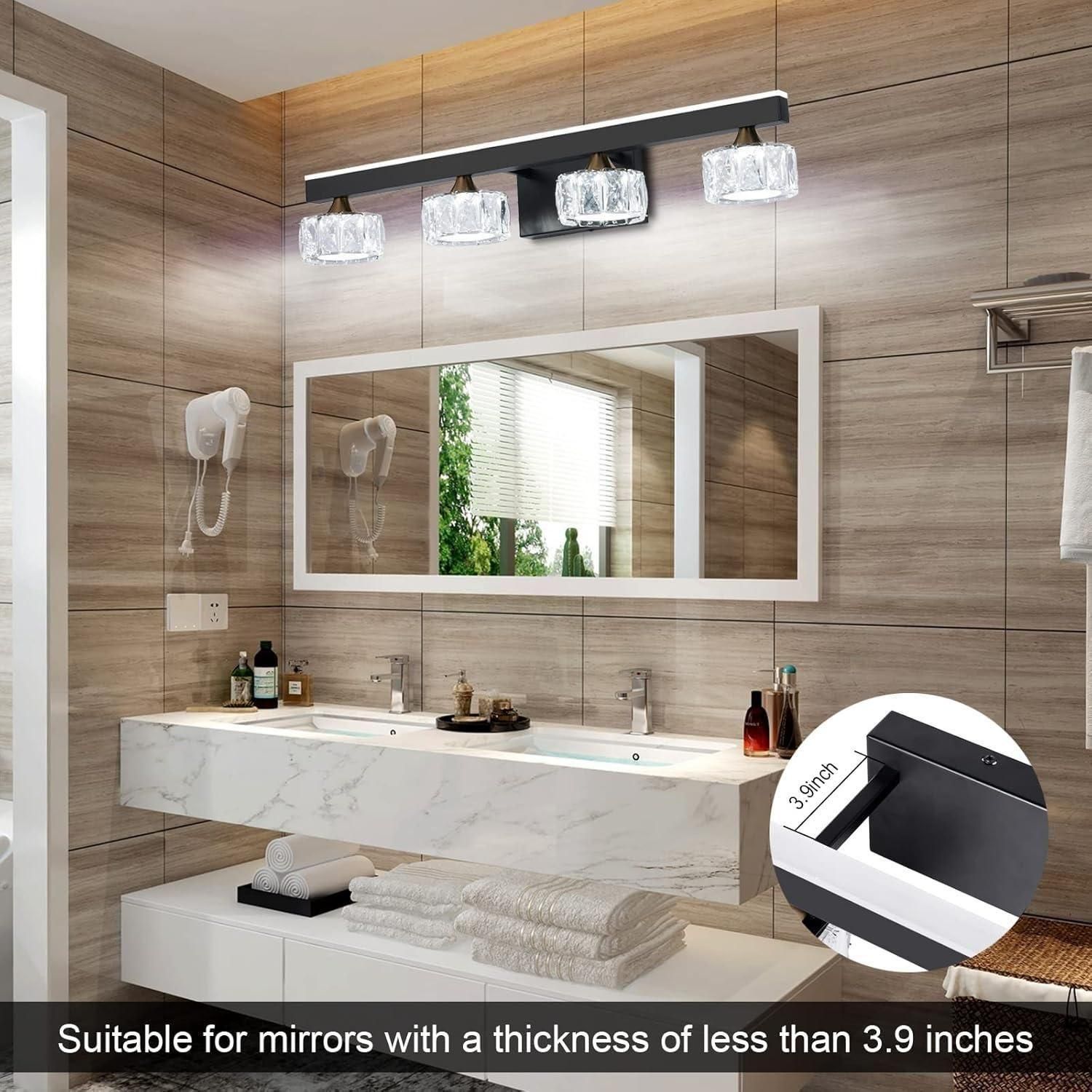 - ♦ [ HIGH QUALITY MATERIAL ] Gorgeous K9 crystal, releasing bright light effect. The black frames of bathroom light fixtures adopt advanced electroplating craft, which has the functions of dustproof, anti-fog, anti-corrosion and moisture-proof. It is heavy duty and sturdy.