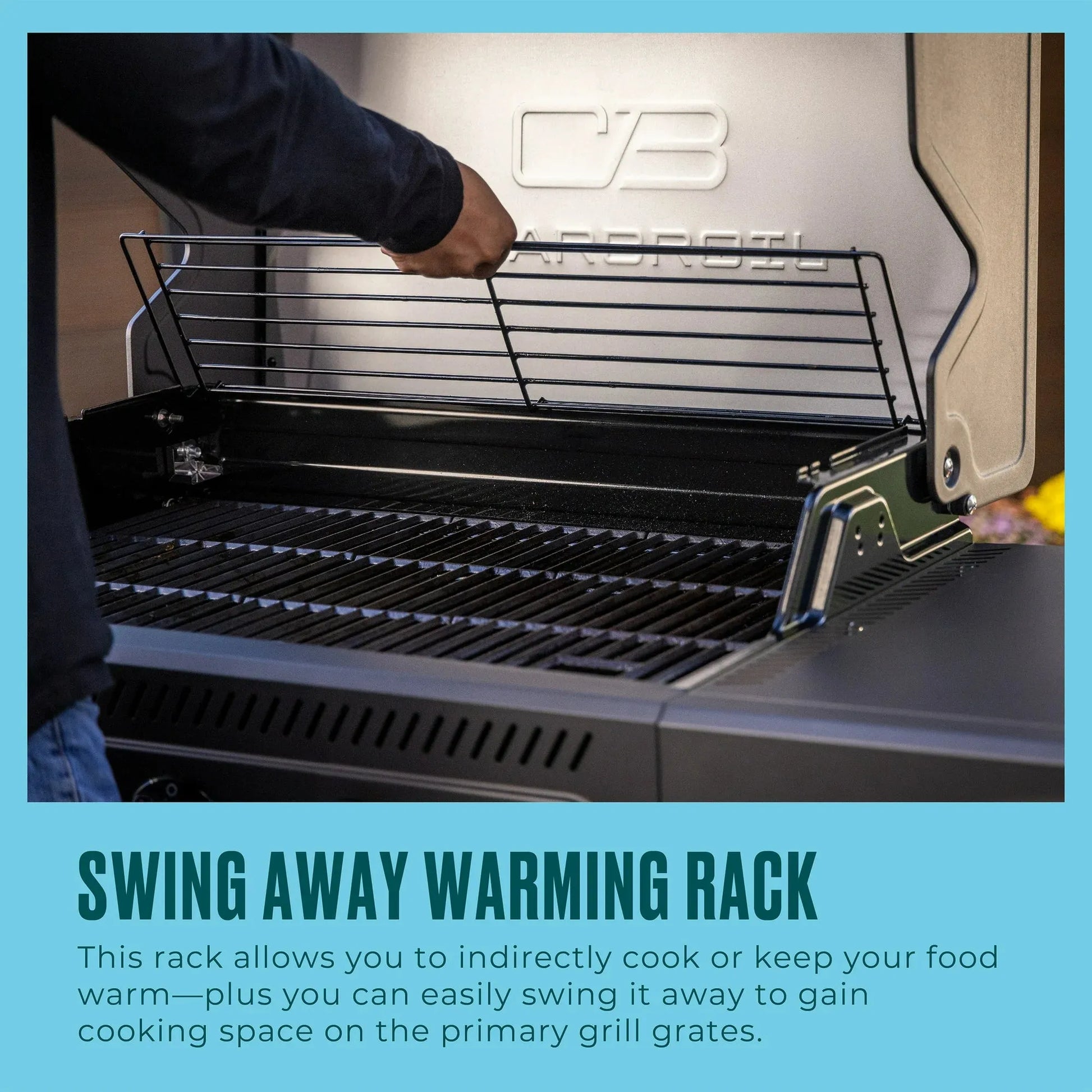 - SWING AWAY WARMING RACK: This rack allows you to indirectly cook or keep your food warm—plus you can easily swing it away to gain cooking space on the primary grill grates