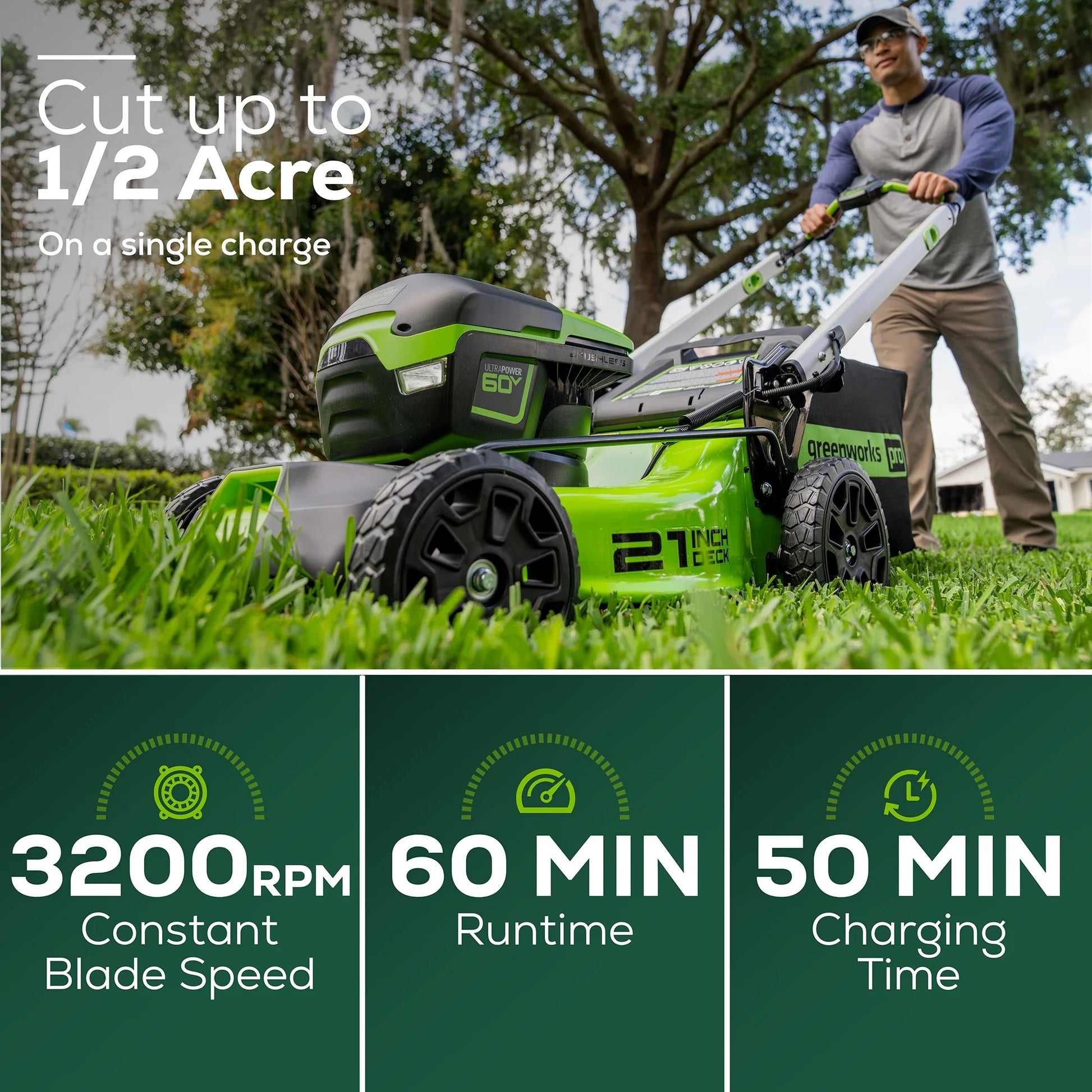 - New Greenworks 60V 21" Cordless Brushless Lawn Mower:
