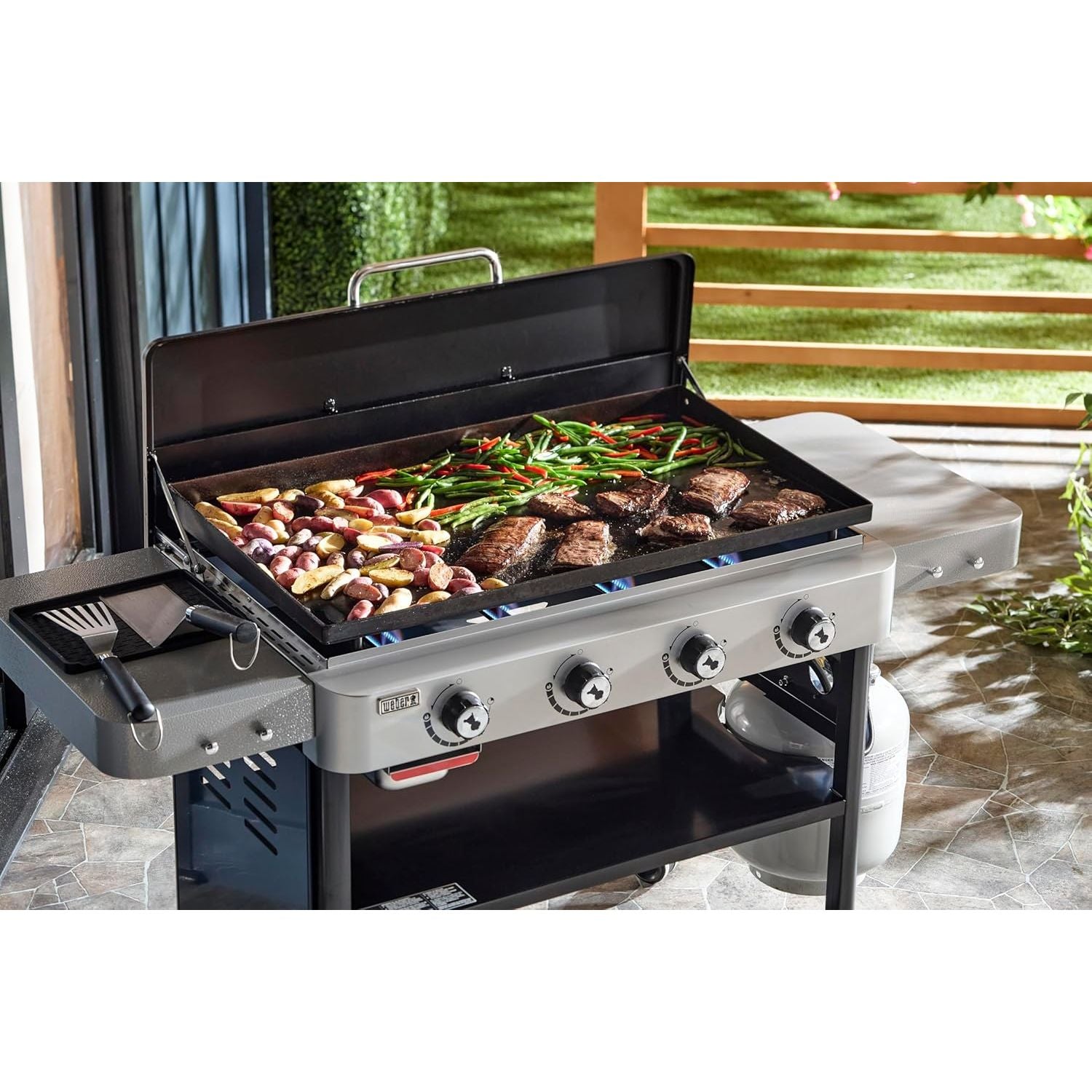 - Scrambled, cheesy eggs with crisp bacon, toasted Italian paninis and juicy smashed burgers with caramelized onions are just the beginning of what you can create on your Weber Griddle.